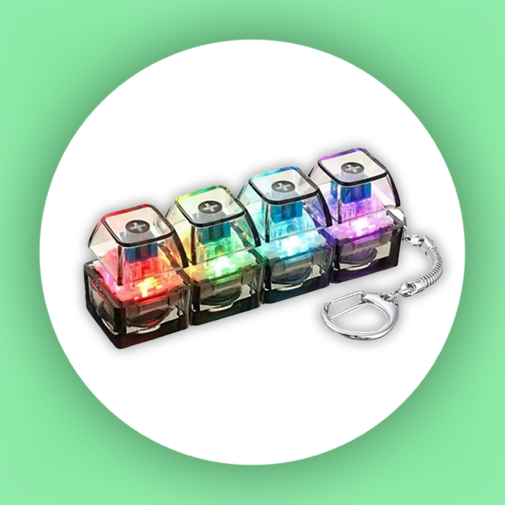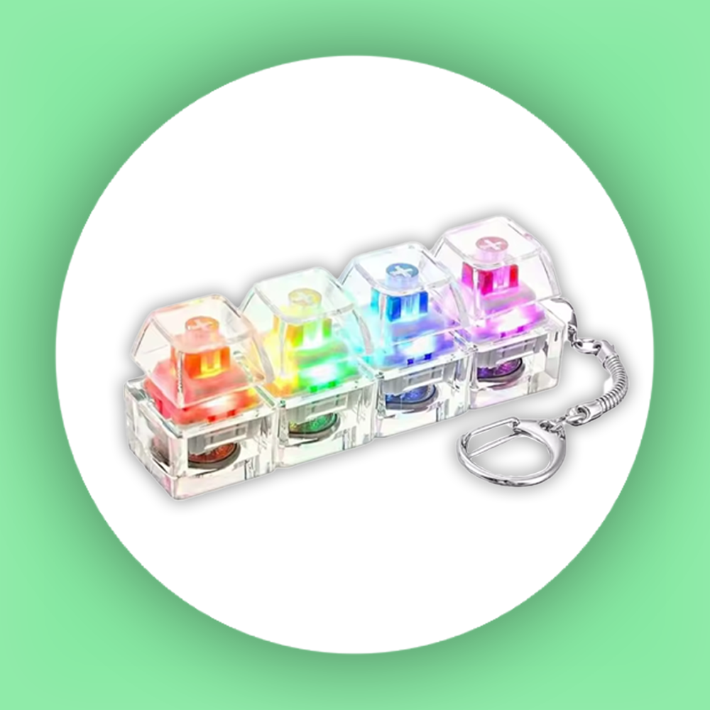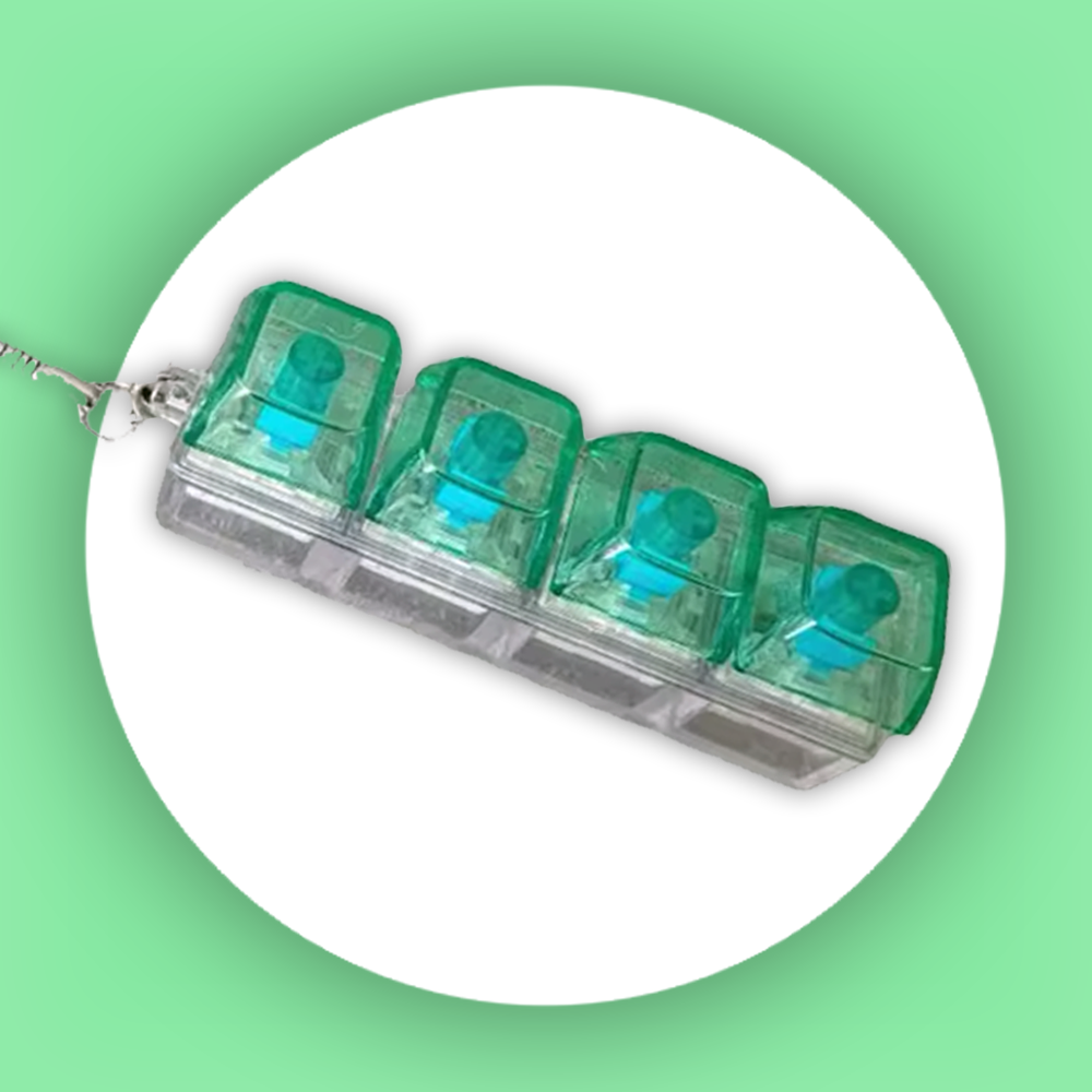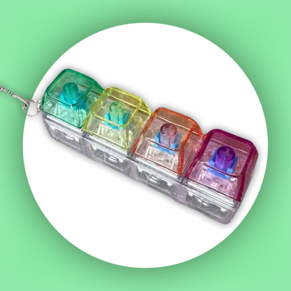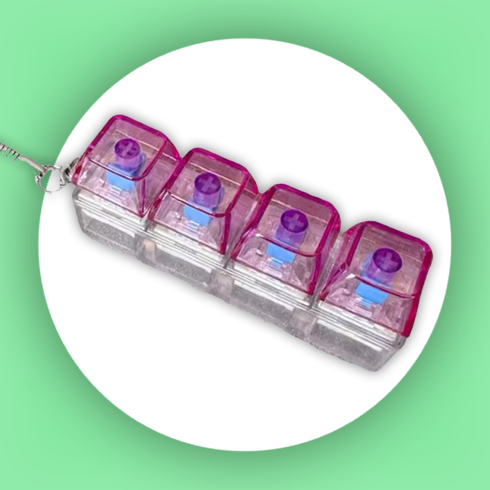 Kompaktowy gadżet typu „fidget” w formie breloka, który oferuje autentyczne, satysfakcjonujące kliknięcie mechanicznego przełącznika - dostępne zawsze, gdy tylko masz go w dłoni.